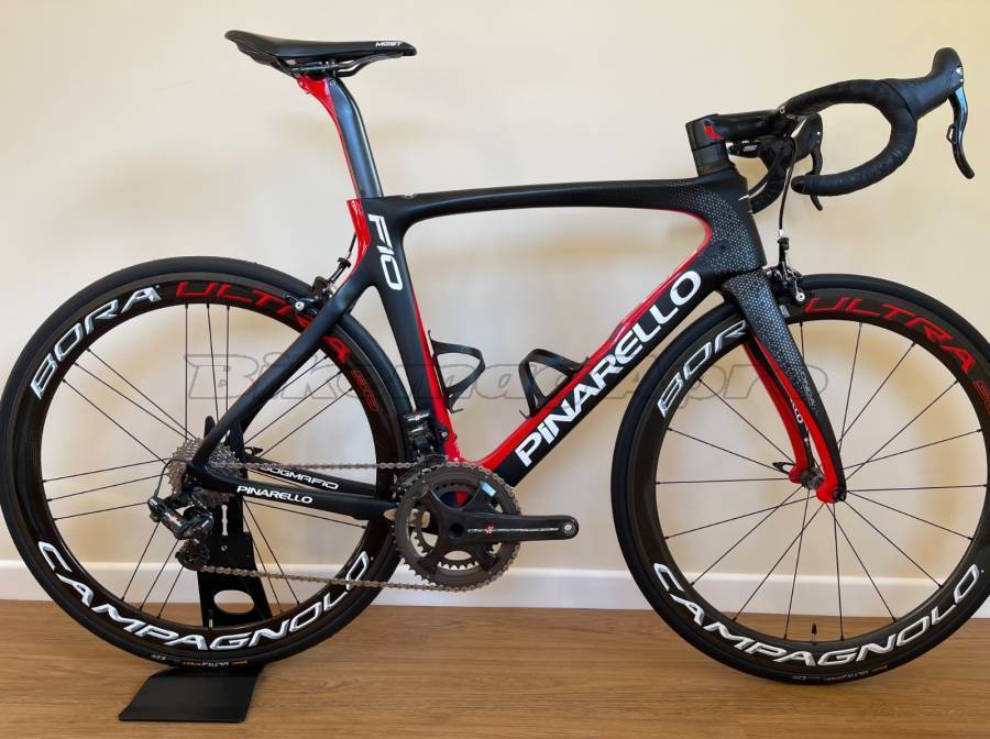 Eladó egy szinte új állapotú Pinarello Dogma F10 karbon országúti kerékpár 56-os vázméretben. Felszereltség Campagnolo Super Record (EPS elektromos) 2x11s váltás és fékszett. Hajtókar Campagnolo Super Record karbon-titán 172,5mm/50/34t, sor 12-29t. Kormány Most Talon Aero 110/440mm. Nyereg Most Selle Italia karbon pálcás. Kerékszett Campagnolo Bora Ultra 50 AC3 karbon kerámia csapágyazás. Külsők Continental Ultra Sport 25mm hajtogatós. Kerékpár pedál nélküli súlya: 7,2kg. Csak komoly vásárlási szándékkal keressen! Köszönöm, hogy elolvasta a hirdetésem!