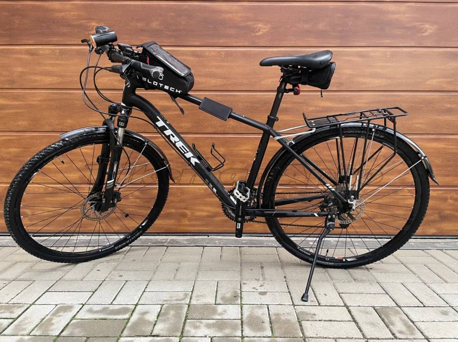 In excellent condition, from the first owner, with warranty card. The accessories (except the frame bag) are Trek/Bontrager branded and included in the price: mudguards, frame bag, lights, bike computer, bottle cage, rear rack, kickstand, and bell — together worth approx. HUF 90,000 when new.