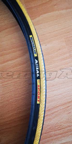 A képeken látható Michelin Axial BiSport 700x23 fekete/sárga gumik, teljesen új állapotban eladók.