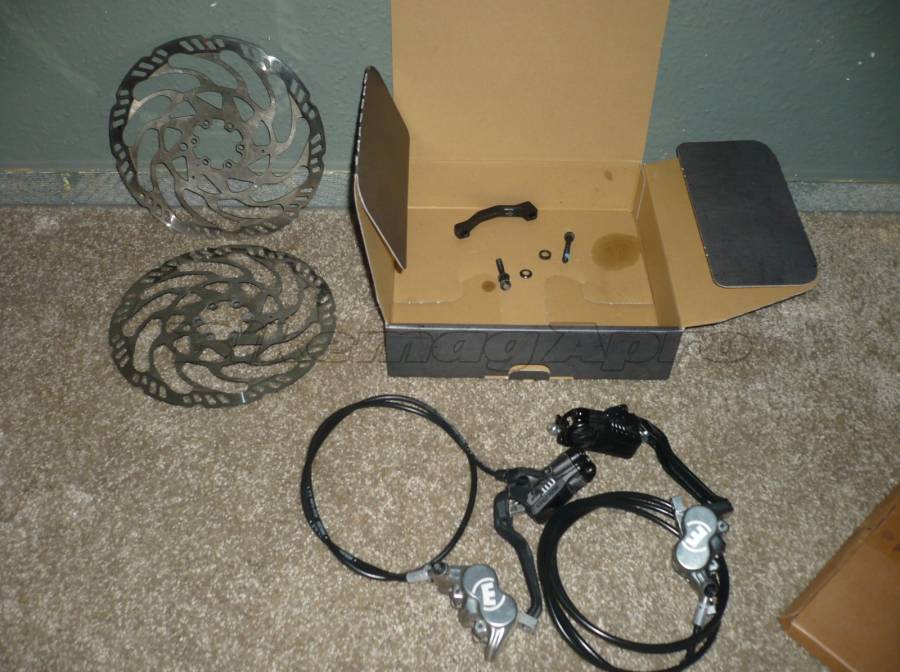 Csere miatt eladó egy Magura MT7 hidraulikus fékszett 203 mm.-s tárcsákkal, használt-normál, a képeken látható állapotúak. A fékcsövek hossza: 84 és 150 cm. A hátsó fékcsövet a kifűzés miatt el kellett vágni.