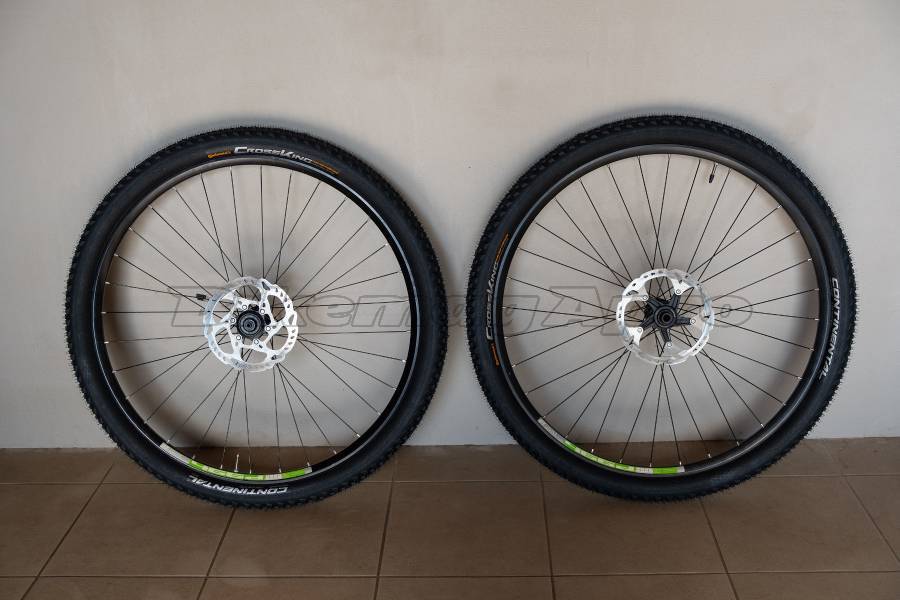 Eladó a képen látható két komplett kerék. Dt Swiss 466d felnik, Slx kerékagyak, új Continental CrossKing gumikkal, Shimano centerlock tárcsákkal.