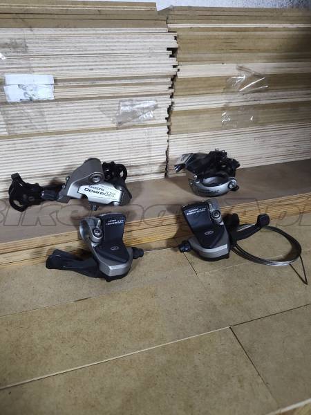 Eladó a képeken látható Shimano Deore LX (3x9s) első-/hátsó váltó, váltókarokkal.