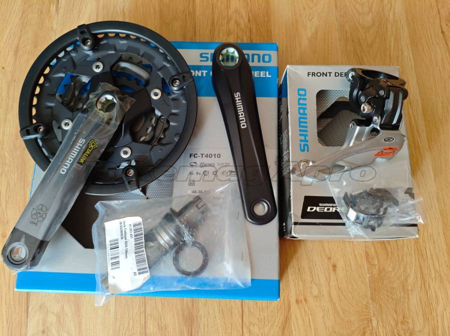 - Shimano Alivio FC-T4010 : Octalink hajtómű, három acél lánctányér (44-32-22T), 170 mm hosszúságú hajtókar, tengelyrögzítő csavarokkal, láncvédővel (leszedhető)