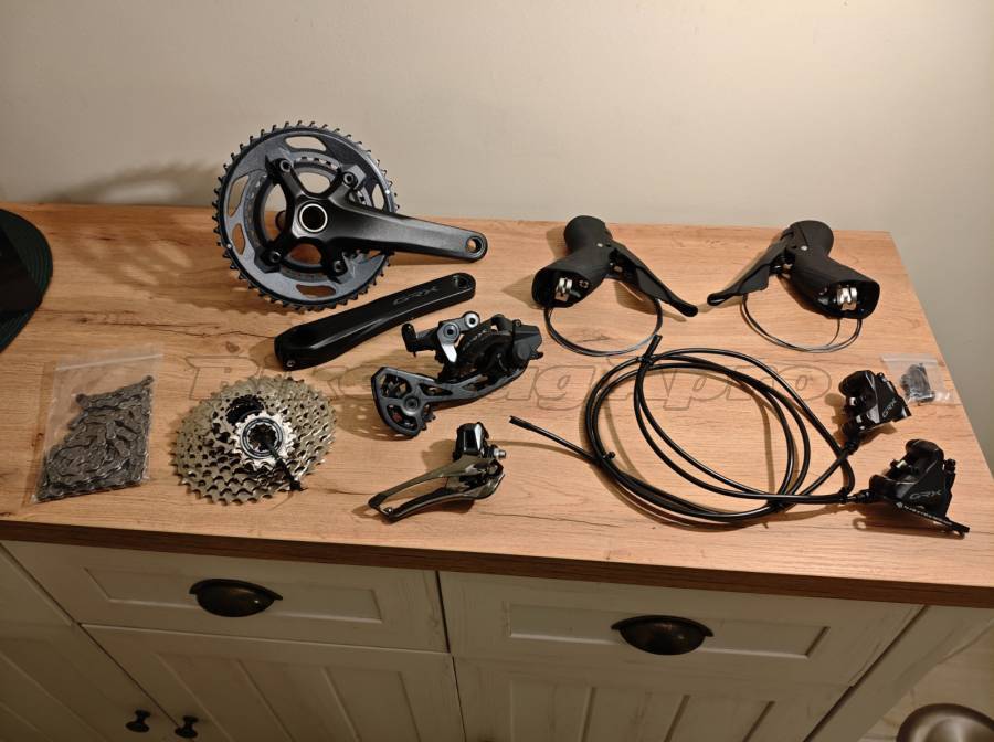 Ajánlok egy GRX 610 szettet 2×12 rendszerhez amely egy új kerékpárról került le.Tárolásból adódó minimális,apró kopásnyom található rajta.A szett tartalma: