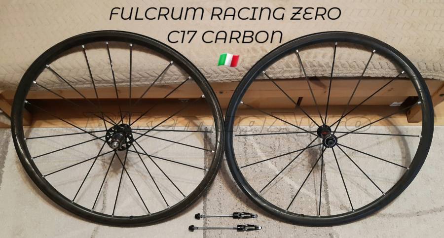 Fulcrum Racing Zero C17 karbon országúti kerékszett. Használt, új állapotú! 1300gr/pár! Új ára kb. 6‐700eFt!! Campagnolo 1-11 speed rotor, karbon felnik (peremes), karbon agyak, kerámia csapágyak, alu aero küllők.