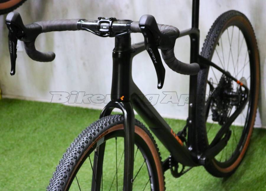 - A japán márka gravel zászlóshajója, 12 sebességes Shimano GRX szett, ami a japán óriás terepre is alkalmas országúti szettje, vagyis kifejezetten gravel felhasználására készült. A hajtáslánc nagy áttételi tartományt ad — ez nagyon praktikus, amikor terepen, emelkedőkön, murvás szakaszokon is szeretnél haladni.