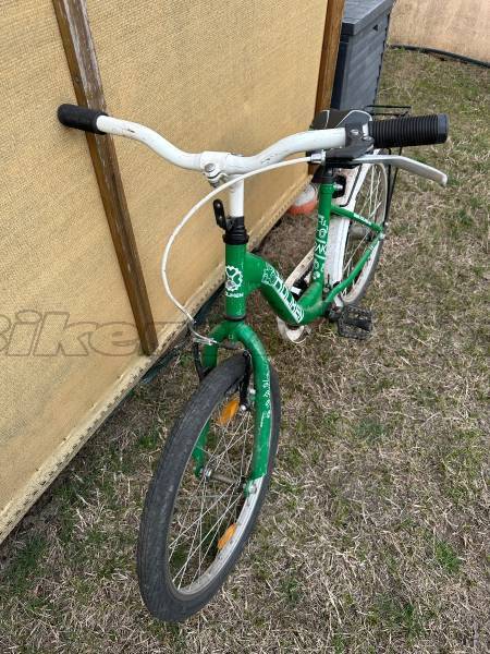 Eladó egy használt Koliken Traki Gyerek Kerékpár 20" zöld-fehér színben. 1 sebességes, acél váz és villa. Hátul kontrafékes, elől V-fékes.