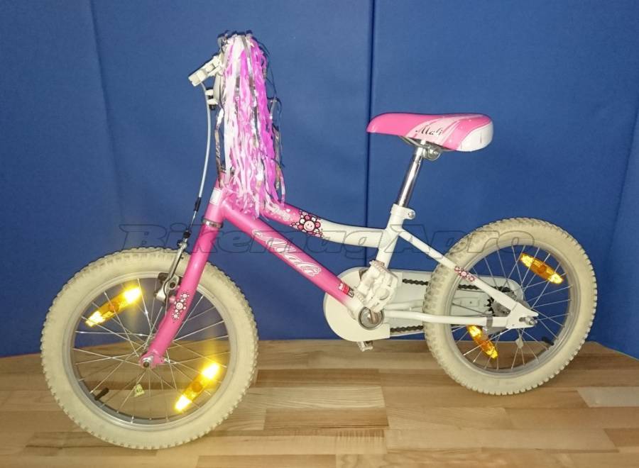 Eladó 14"-os leány bringa kifogástalan állapotban, új első fékkel, összes kiegészítőivel, támaszkerekek plusz csengő. Testmagasságtól fúggően 4-7 éves korig ajánlott.