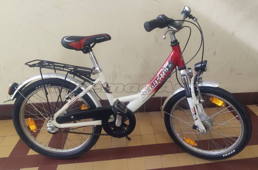 Eladó Pegasus Avanti 20'' német prémium unisex gyerekkerékpár, 3 fokozatú Shimano Nexus agyváltóval, teleszkópos villával, dinamós világítással, csomagtartóval felszerelve, a képek szerinti jó állapotban.