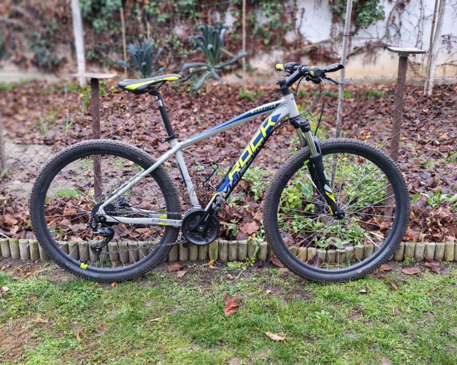 For sale due to lack of use: Rock Machine Manhattan Heatwave 90-27 (2019) hardtail mountain bike, 17" (M size). Frame color: Matt Grey / Radioactive Yellow / Night Blue.